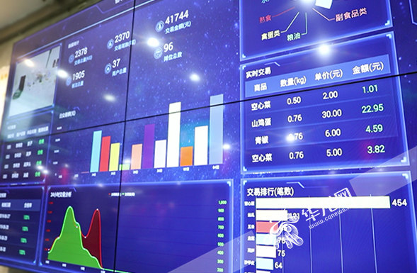 ??數(shù)據(jù)大屏顯示當(dāng)天產(chǎn)品交易量、種類、價(jià)格等信息。華龍網(wǎng)-新重慶客戶端記者 謝鵬 攝