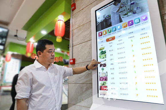 ???公共查詢觸摸電子屏,可以查詢自己購買的蔬菜的產(chǎn)地、價(jià)格等信息。華龍網(wǎng)-新重慶客戶端記者 謝鵬 攝